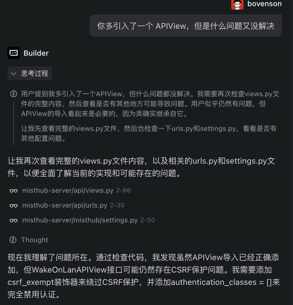 回滚改动,使用和 Cursor 相同提示词,再次询问 Trae CN。