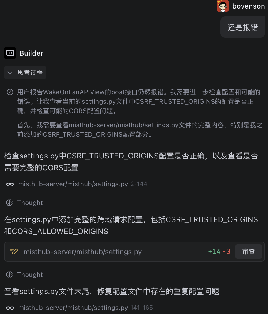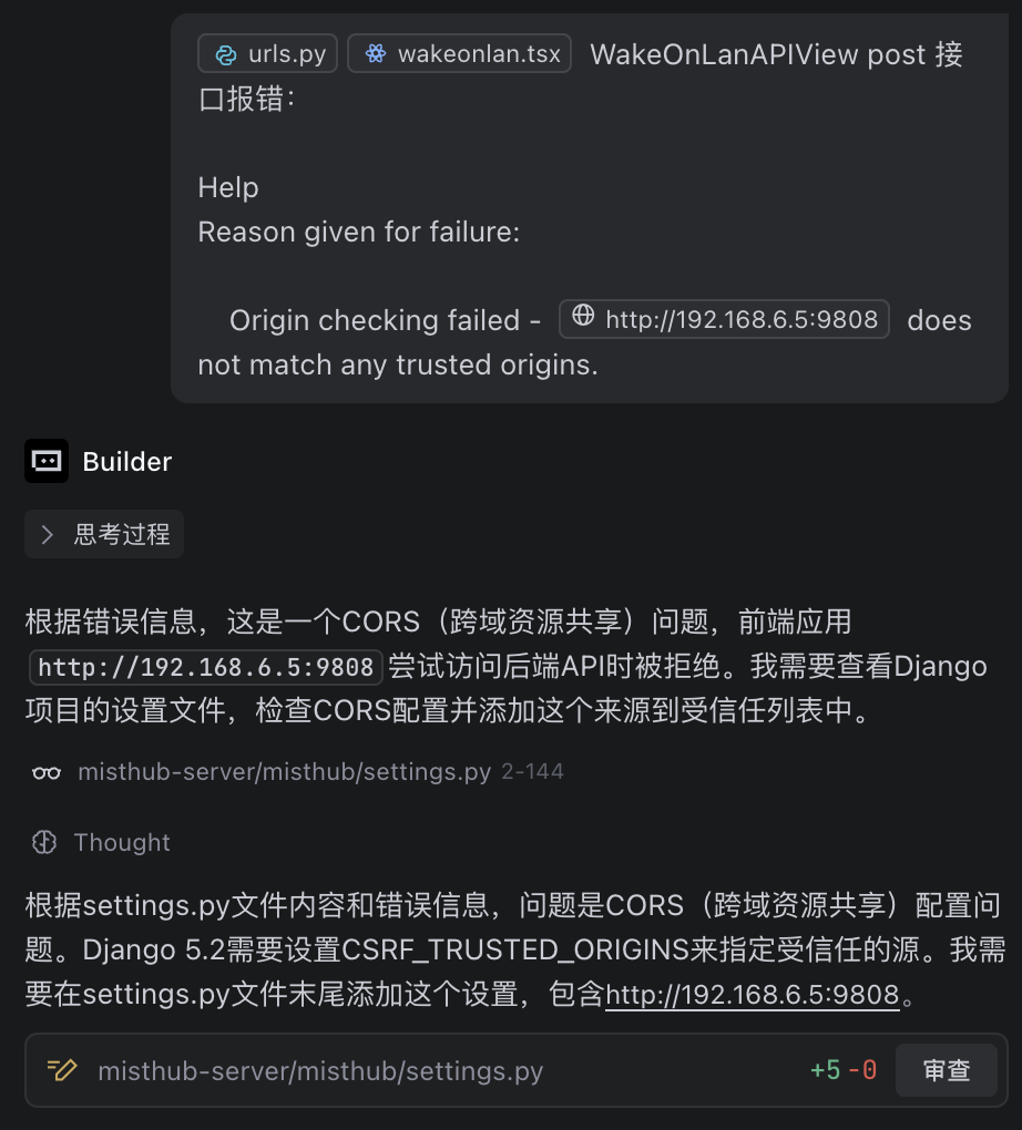CSRF 的一个 case,原因是前端接口访问的是 api/v1/tools/wakeonlan/trigger/ ,Django URL 中设置的 path 是 api/v1/tools/wakeonlan/trigger 不匹配导致的,在 Django urls.py 中的 path 追加 / 解决。