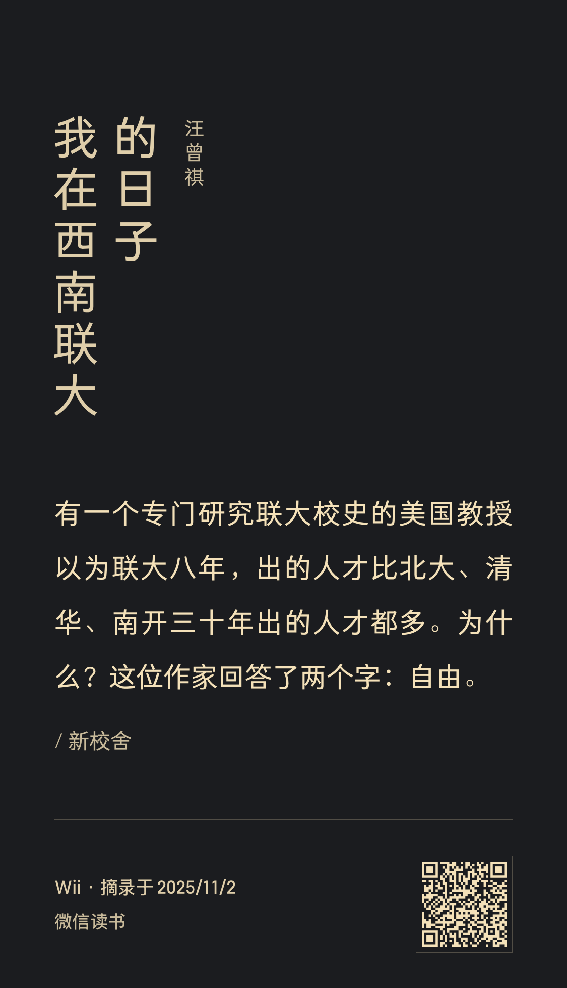 在《新校舍》一篇中,汪先生提了一个西南联大人才辈出的原因,自由。这不仅让人多想一下。